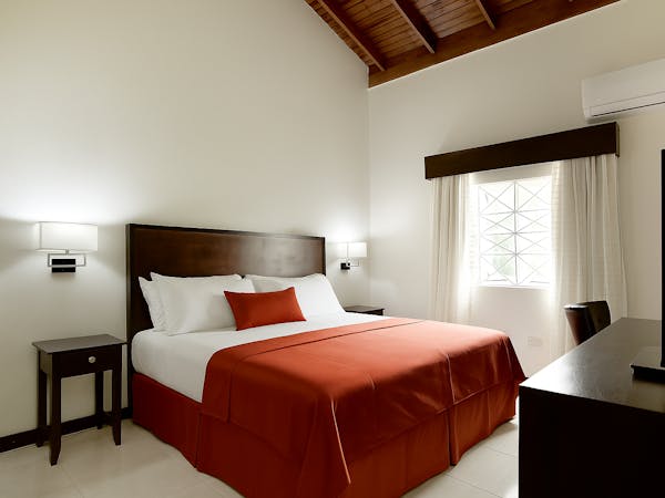 Living the suite life begins in our King Room en Suite, complete with a king bedroom which contains a king bed and a full en-suite bedroom containing a double bed. Set off by high ceilings, both rooms feature a wardrobe and cable television. A mini refrigerator is also provided for your convenience.